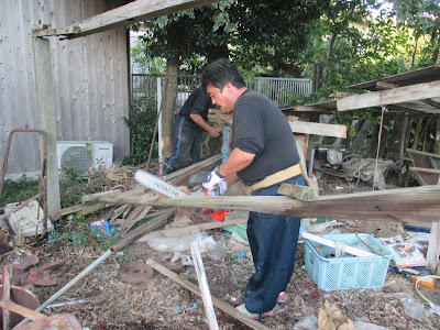 Als Arbeiter auf einer organischen Farm gehört natürlich auch dazu, den alten Schuppen des Nachbarn dem Erdboden gleich zu machen!